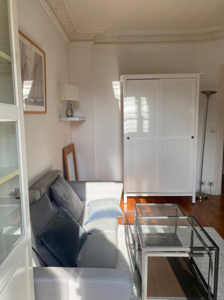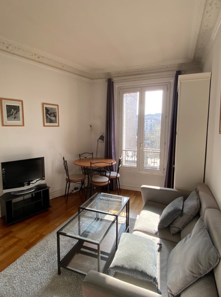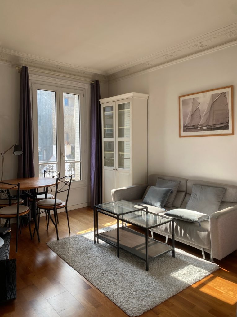 Joli 2 pièces meublé avec parquet situé sur une placette charmante à 5 minutes de la station de métro Convention, dans un bel immeuble de 1900 avec ascenseur et gardien.